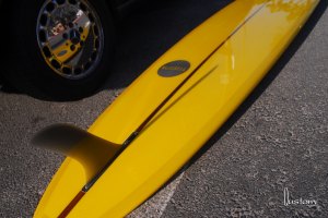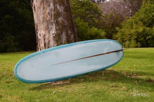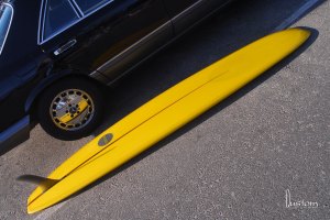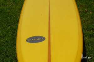 - A 9'7" Russell double ender with a tapered stringer that I purchased new at Icons of Surf in 2014