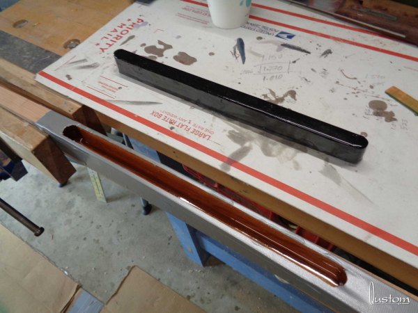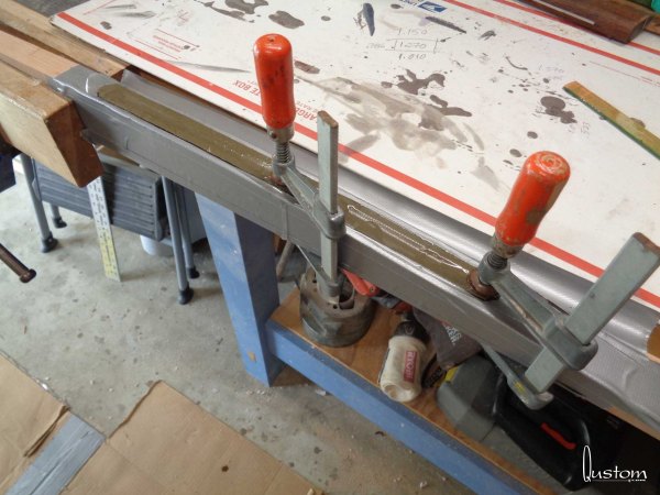 My cuts on the other hand were not exactly perfect. Still, the WeldBond filled all the gaps and was easy to work with during the final shaping stages. I used hot water pipe foam to protect the rails and duct tape to hold it all together while it dried.