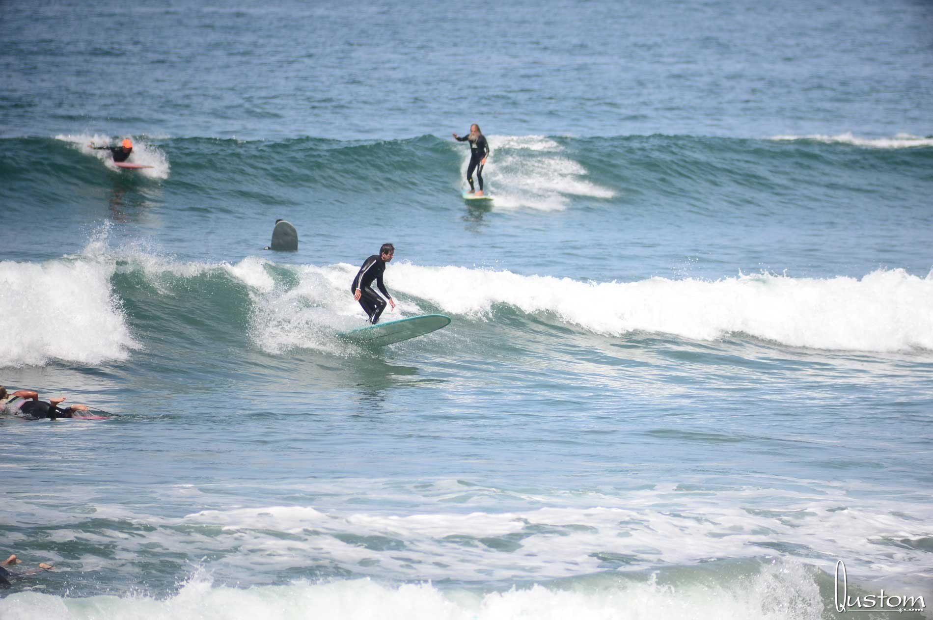 The wide tail with all that rocker really helps the board get into waves easily by providing a large surface for an approaching wave to push against. Just make sure to find the sweet spot to keep the nose out of the water, and if you get too agressive to the point of pearling, the narrow nose can often be pulled back out of water in time to still get the wave. Yeah, a little more rocker (and perhaps a bit of belly roll) up front might have gotten me out of a few tricky situations, but overall she's a blast and she even noserides a bit in fast sections. I will be using everything I learned to make the next one even better, and that's what keeps me motivated.