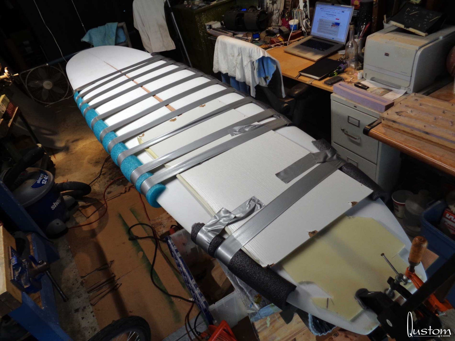 After surfing it for three months now, I love this board! I have ridden it dozens of times since I finished it, and it has never failed to excite. In fact I rode it so much before I ever got around to photographing it that I don't even have any photos of it finished but without all the pressure dings on the deck. Too bad.