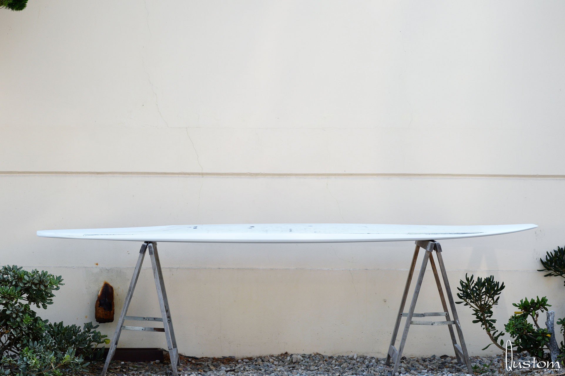 My goal with the Viceroy was to get a similar feeling at the back, but with a more pulled in nose and less rocker to maximize speed. The 93AX blank I was using was going to limit me to a 9'0" maximum length, which would just get me in the door at longboard contests.