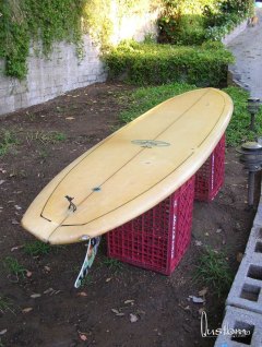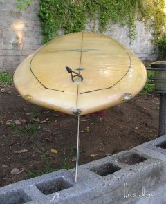 Of the many boards I had to let go (which included an early '60s Harbour, serial number 753), this Hansen v-bottom might just be the one I miss the most - not because it was the most valuable (especially back then; these boards have gotten a little more desirable since then) - but because I never rode it. At that time I was strictly a goofy-ass longboarder. Of course if you have browsed this site much at all (or looked at this), you will surely know that by now I am a fully fledged goofy-ass v-bottom rider!