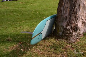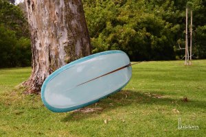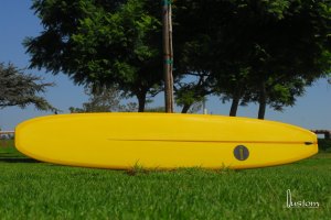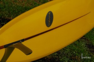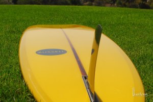 - A 9'7" Russell double ender with a tapered stringer that I purchased new at Icons of Surf in 2014