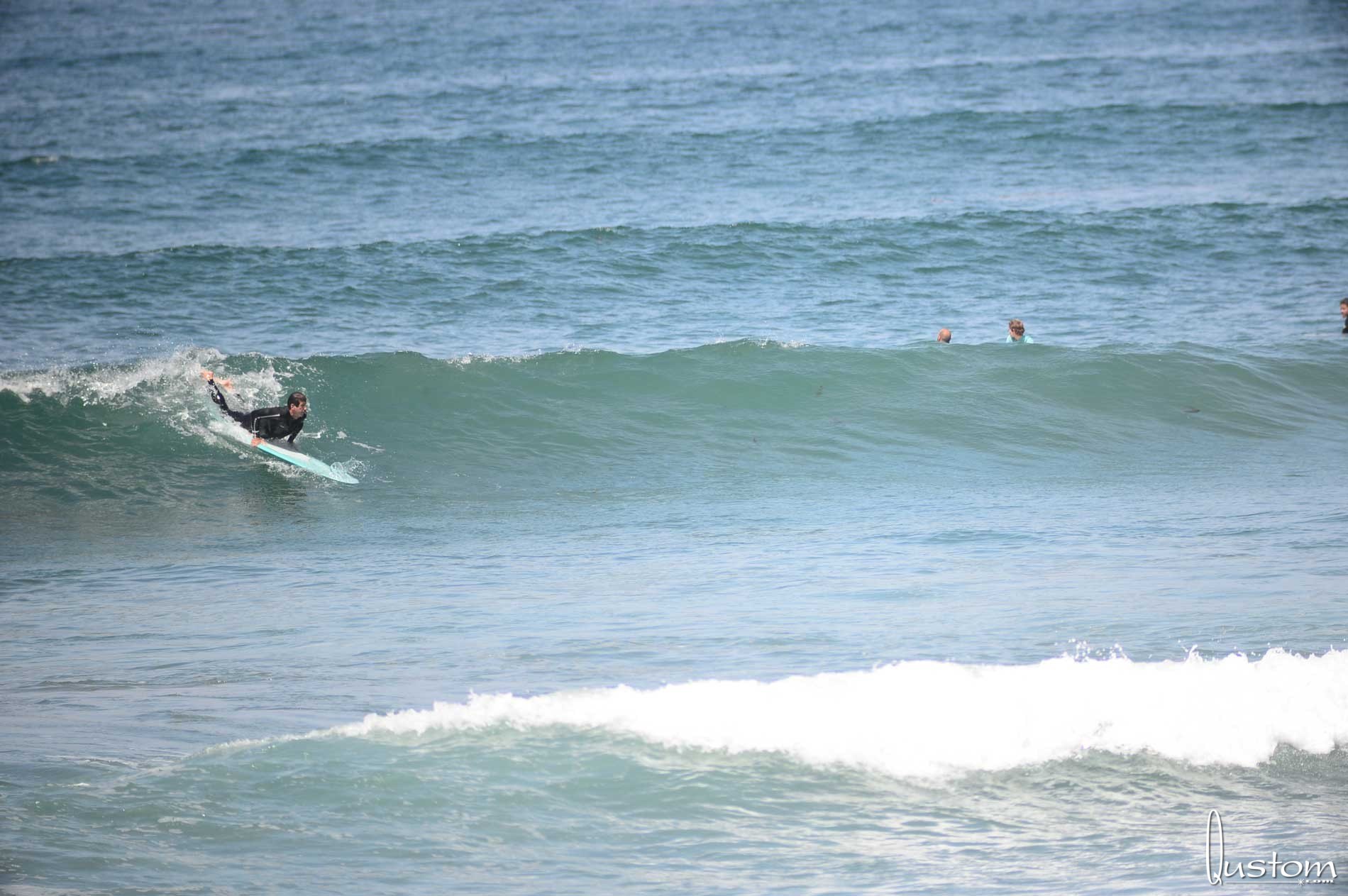 The wide tail with all that rocker really helps the board get into waves easily by providing a large surface for an approaching wave to push against. Just make sure to find the sweet spot to keep the nose out of the water, and if you get too agressive to the point of pearling, the narrow nose can often be pulled back out of water in time to still get the wave. Yeah, a little more rocker (and perhaps a bit of belly roll) up front might have gotten me out of a few tricky situations, but overall she's a blast and she even noserides a bit in fast sections. I will be using everything I learned to make the next one even better, and that's what keeps me motivated.