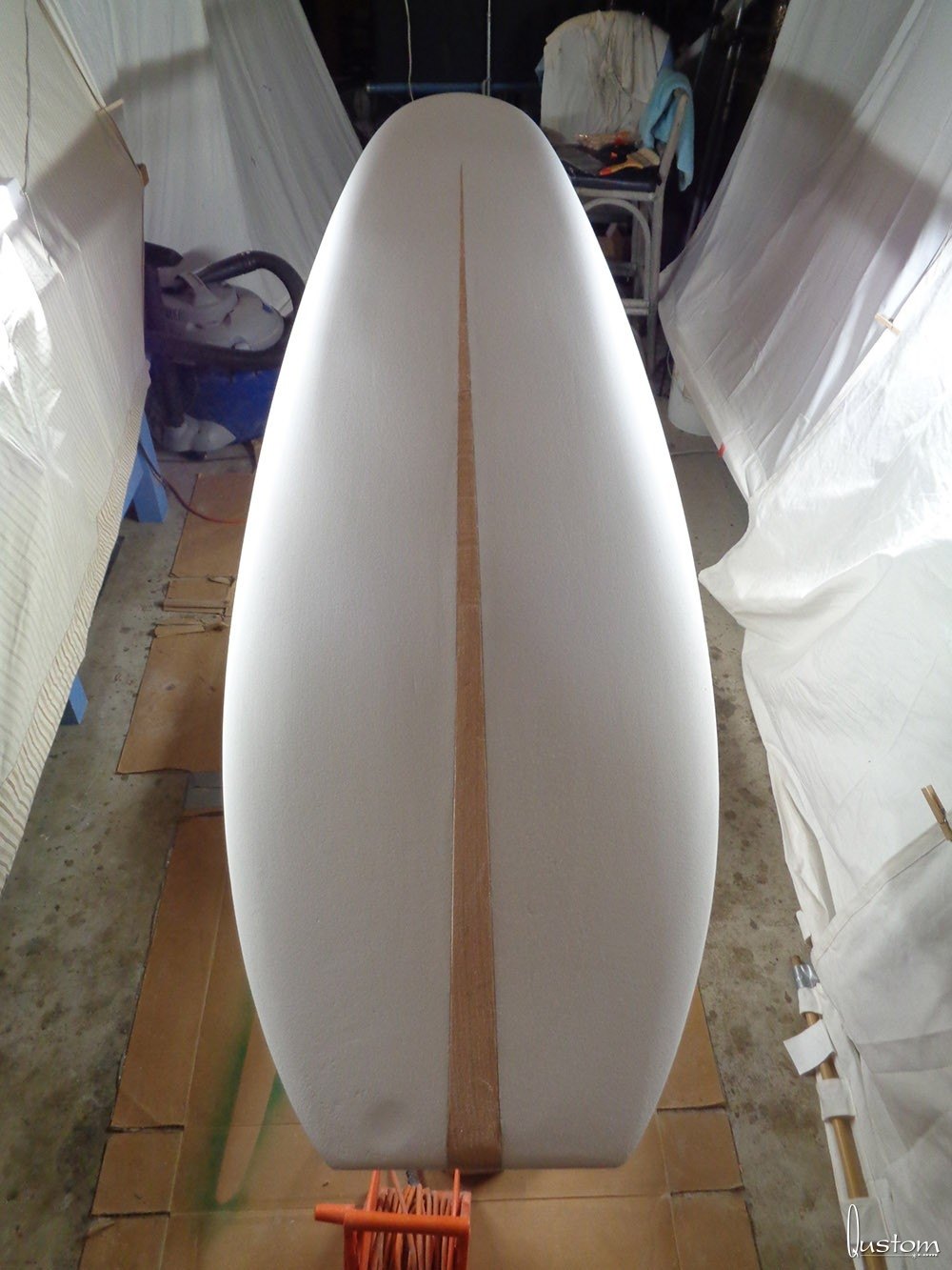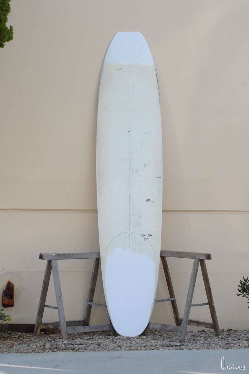 My goal with the Viceroy was to get a similar feeling at the back, but with a more pulled in nose and less rocker to maximize speed. The 93AX blank I was using was going to limit me to a 9'0" maximum length, which would just get me in the door at longboard contests.